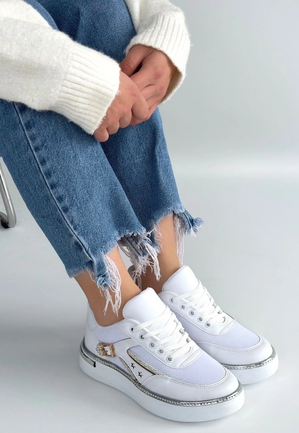 Mier Beyaz Cilt Bağcıklı Spor Ayakkabı