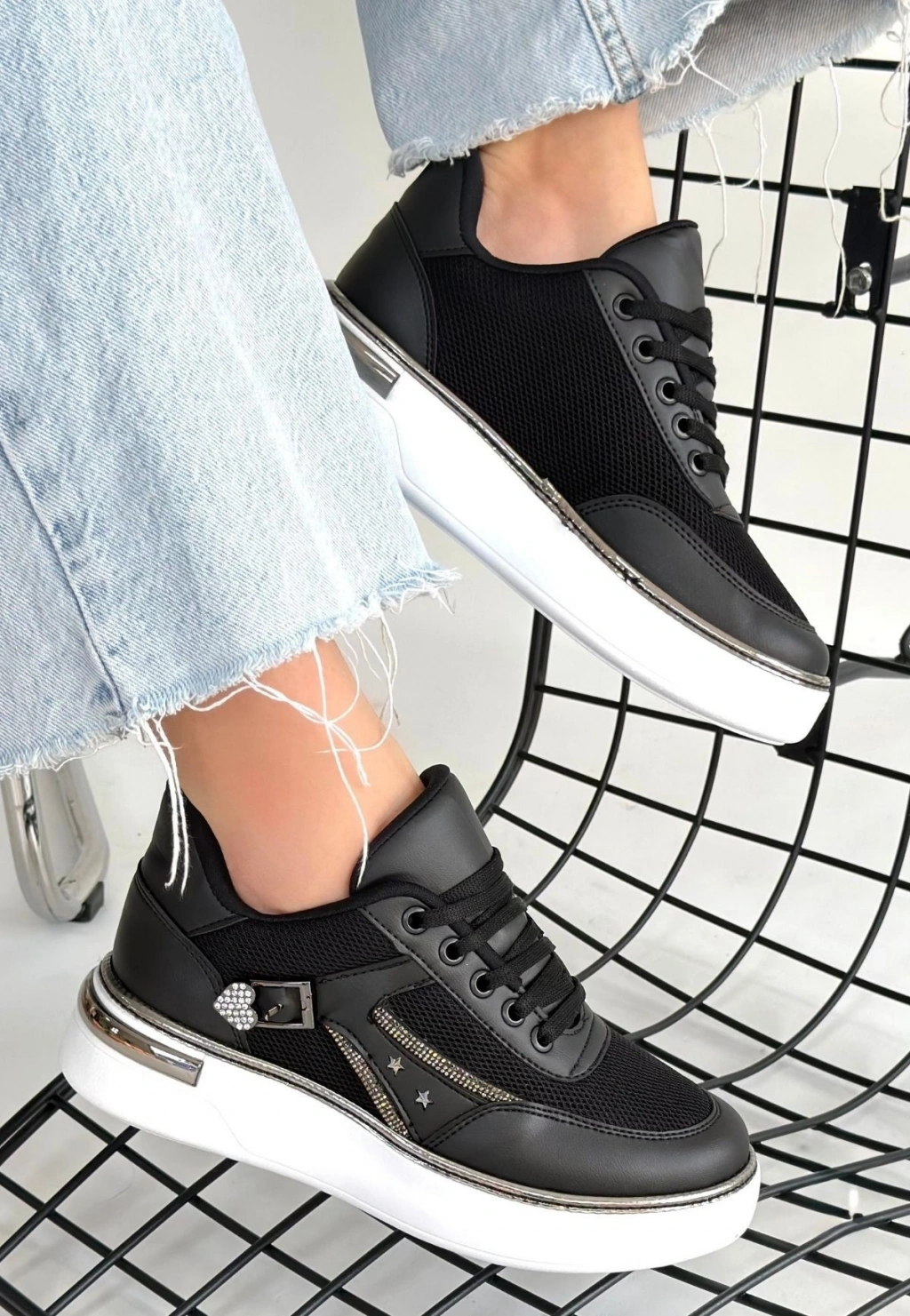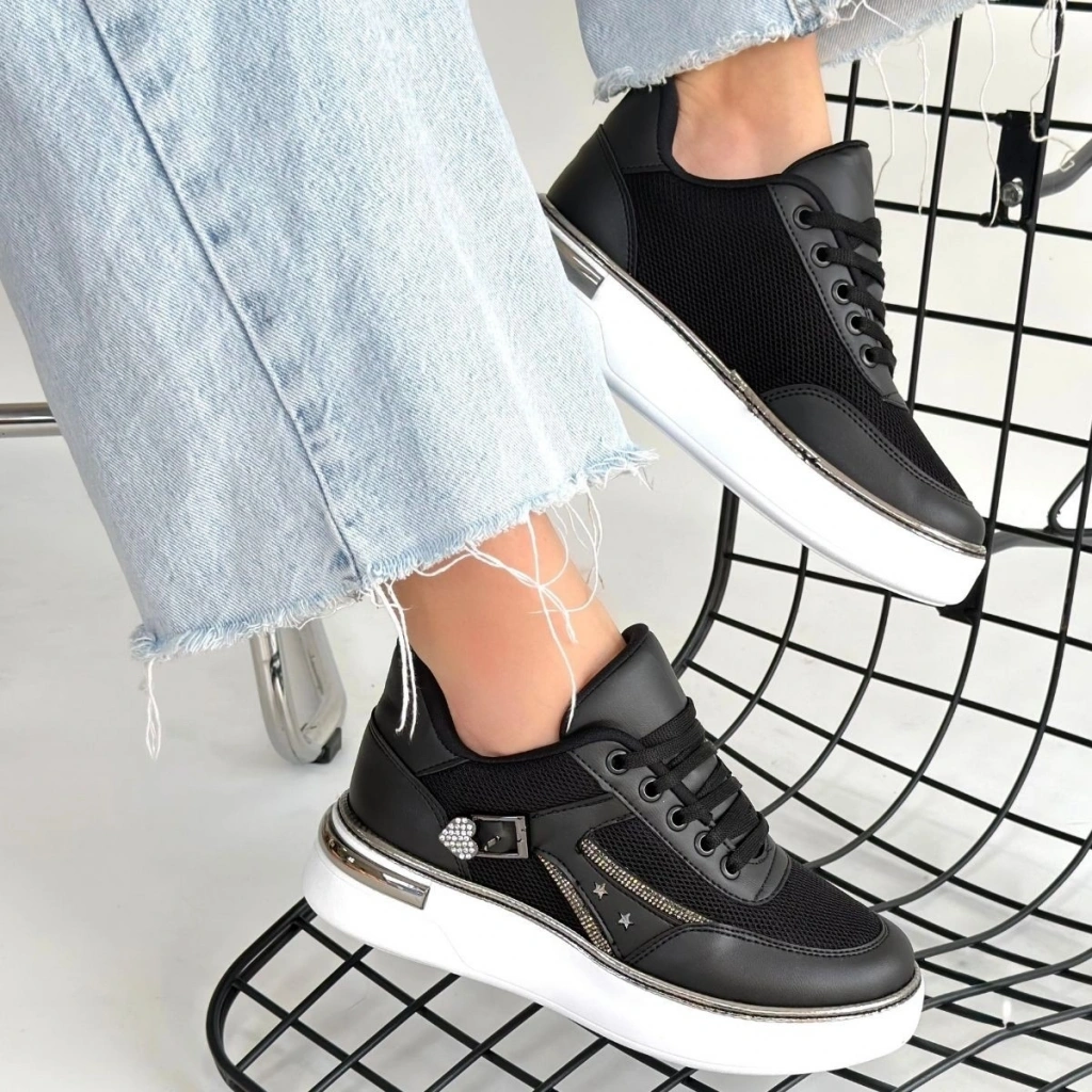Renji Siyah Triko Bağcıklı Spor Ayakkabı