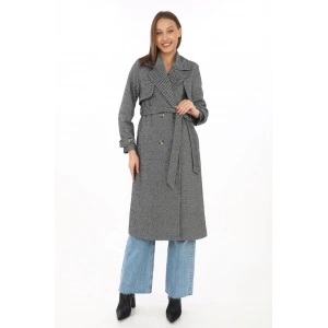 Kadın Balık Sırtı Kaşmir Uzun Kaşe Kaban - Boyalı Gri