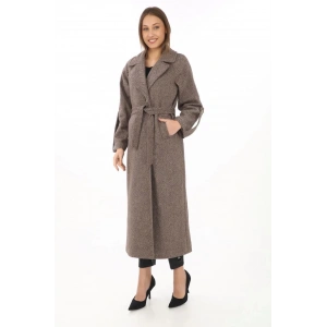 Kadın Balık Sırtı Kaşmir Uzun Kaşe Kaban - Füme
