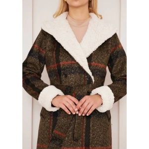 Cepli kuşaklı kaşe kaban kırmızı st26458