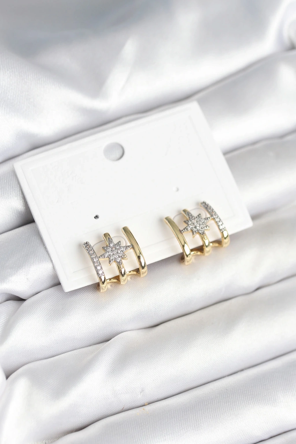 Kaburga Model Kutup Yıldızı Detaylı Gold Renk Kadın Küpe