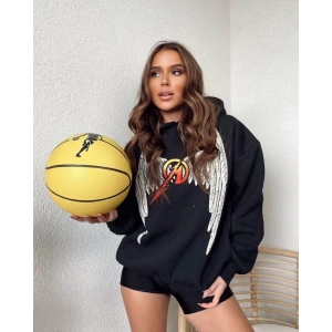 Kadın Baskılı Kapüşonlu Sweat - Siyah