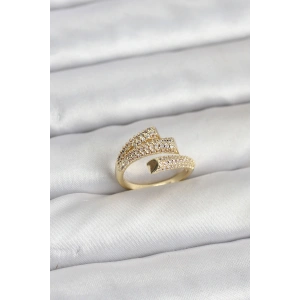Gold Renk Zirkon Taşlı Pirinç Kadın Yüzük