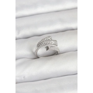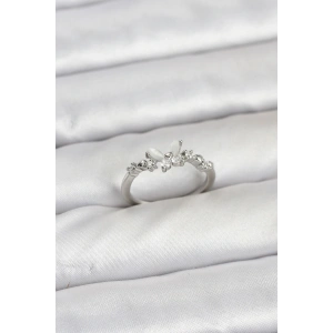 Gümüş Renk Zirkon Taşlı Pirinç Kadın Yüzük