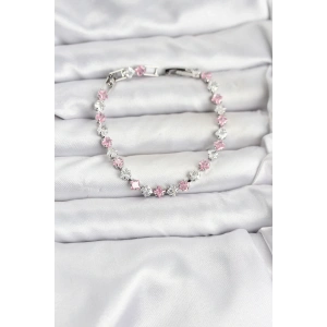 Pembe ve Beyaz Zirkon Taşlı Gümüş Renk Su Yolu Kadın Bileklik