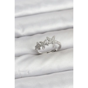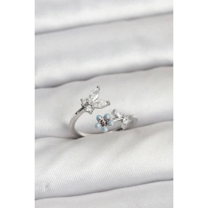 Pirinç Gümüş Renk Kelebek Model Kadın Yüzük