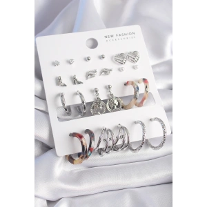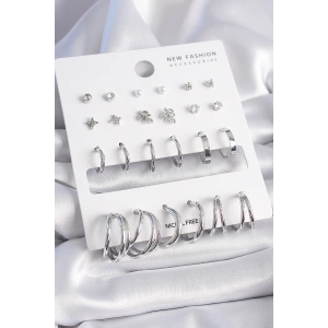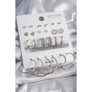 Pirinç Gümüş Renk 12 Çift Kadın Küpe Seti