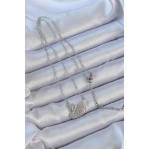316L Çelik Zincir Gümüş Renk Zirkon Taşlı Kuğu Kolye