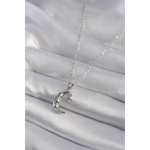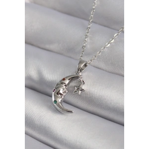 316L Çelik Gümüş Renk Zirkon Taşlı Ay Yıldız Model Kadın Kolye