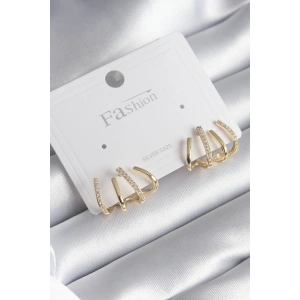 Pirinç Gold Renk Zirkon Taşlı Kadın Küpe