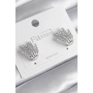 Pirinç Gümüş Renk Zirkon Taşlı Çatal Model Kadın Küpe