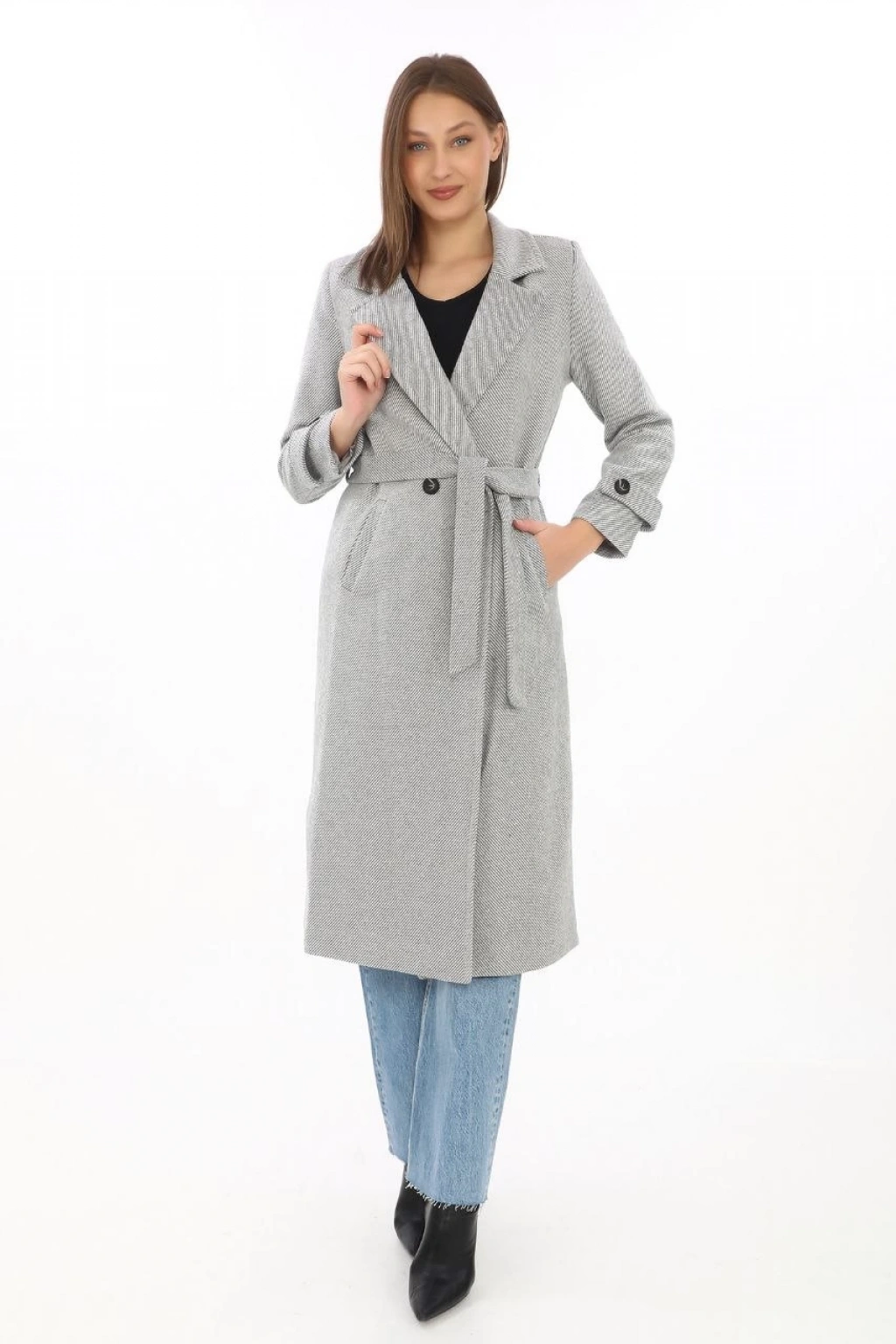 Kadın Balık Sırtı Kaşe Kaban – Uzun Boy Kruvaze Yaka Kuşaklı Astarlı Kışlık Tesettür Kaban, Yünlü Dokuma Kaşmir Kumaş, Cepli Rahat Oversize Kalıp Şık Modern Kaban Mont Modeli (günlük Ve Özel Gün Kombinlerine Uygun) - Gri