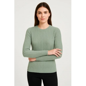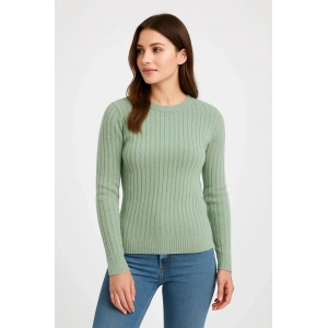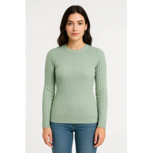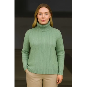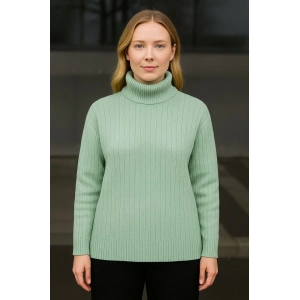 Kadın Balıkcı Yaka Bağazlı Triko Kazak Pamuklu Kalın Fitilli Dokuma - Mint Yeşili