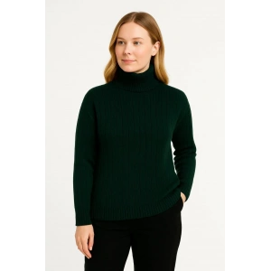 Kadın Balıkcı Yaka Bağazlı Triko Kazak Pamuklu Kalın Fitilli Dokuma - Haki