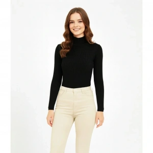 Kadın Yarım Boğaz Triko Kazak yumuşak dokulu Pamuklu ince Dokuma, uzun kollu Rahat Regular kalıp - Siyah