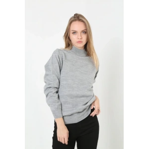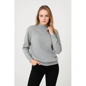 Kadın Yarım Boğaz Triko Kazak yumuşak dokulu Pamuklu ince Dokuma, uzun kollu Rahat Regular kalıp - Gri