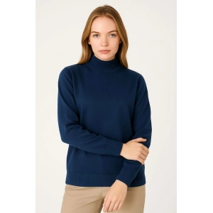 Kadın Yarım Boğaz Triko Kazak yumuşak dokulu Pamuklu ince Dokuma, uzun kollu Rahat Regular kalıp - Lacivert