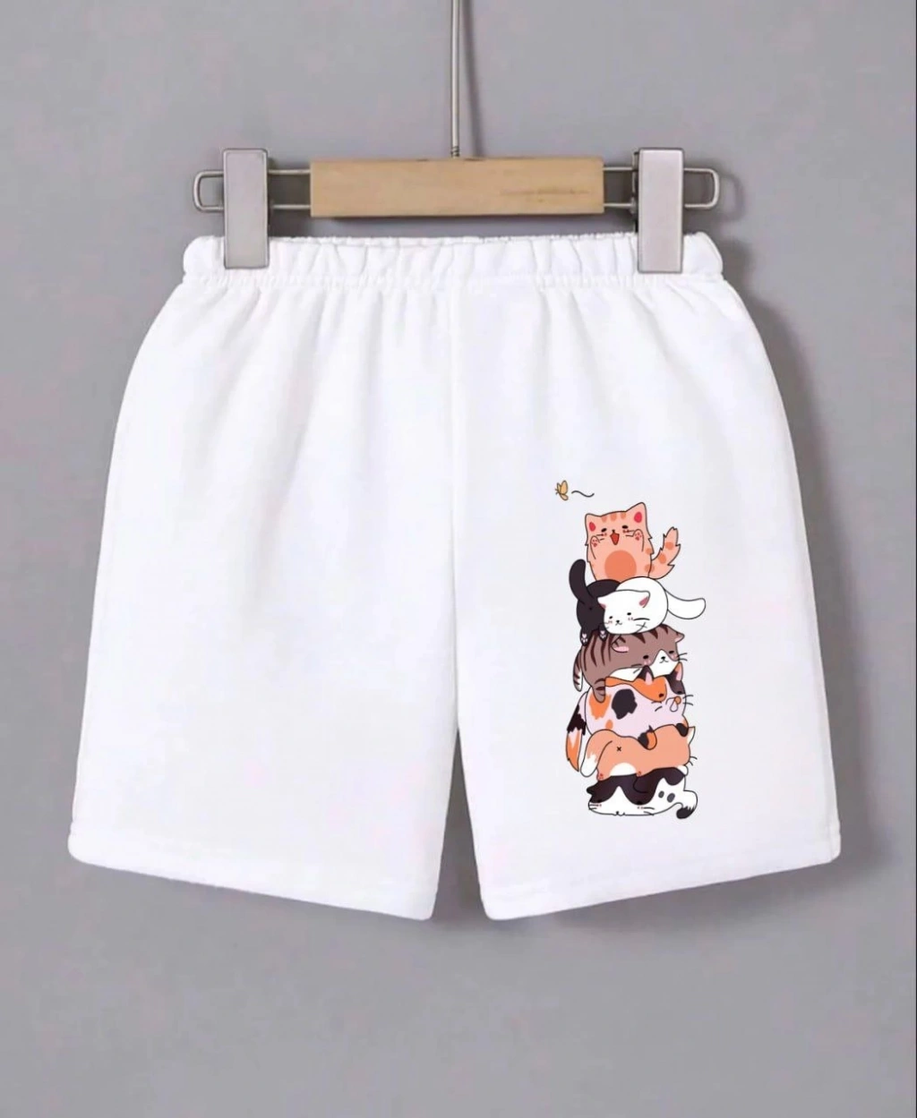 Kadın Beli Lastikli Baskılı Mini Şort - Beyaz