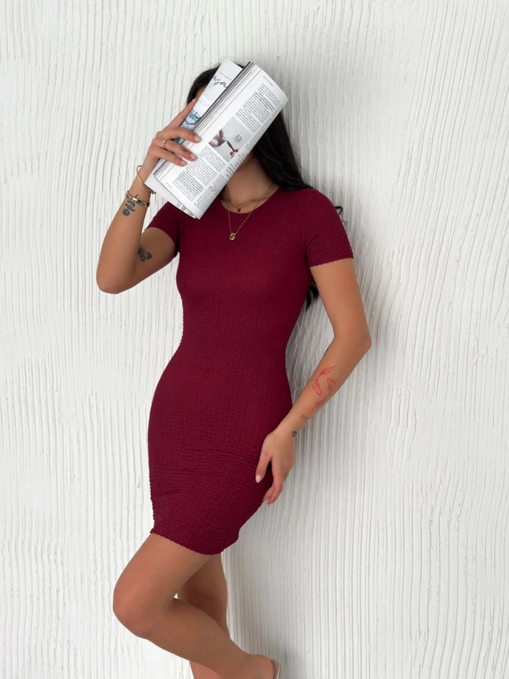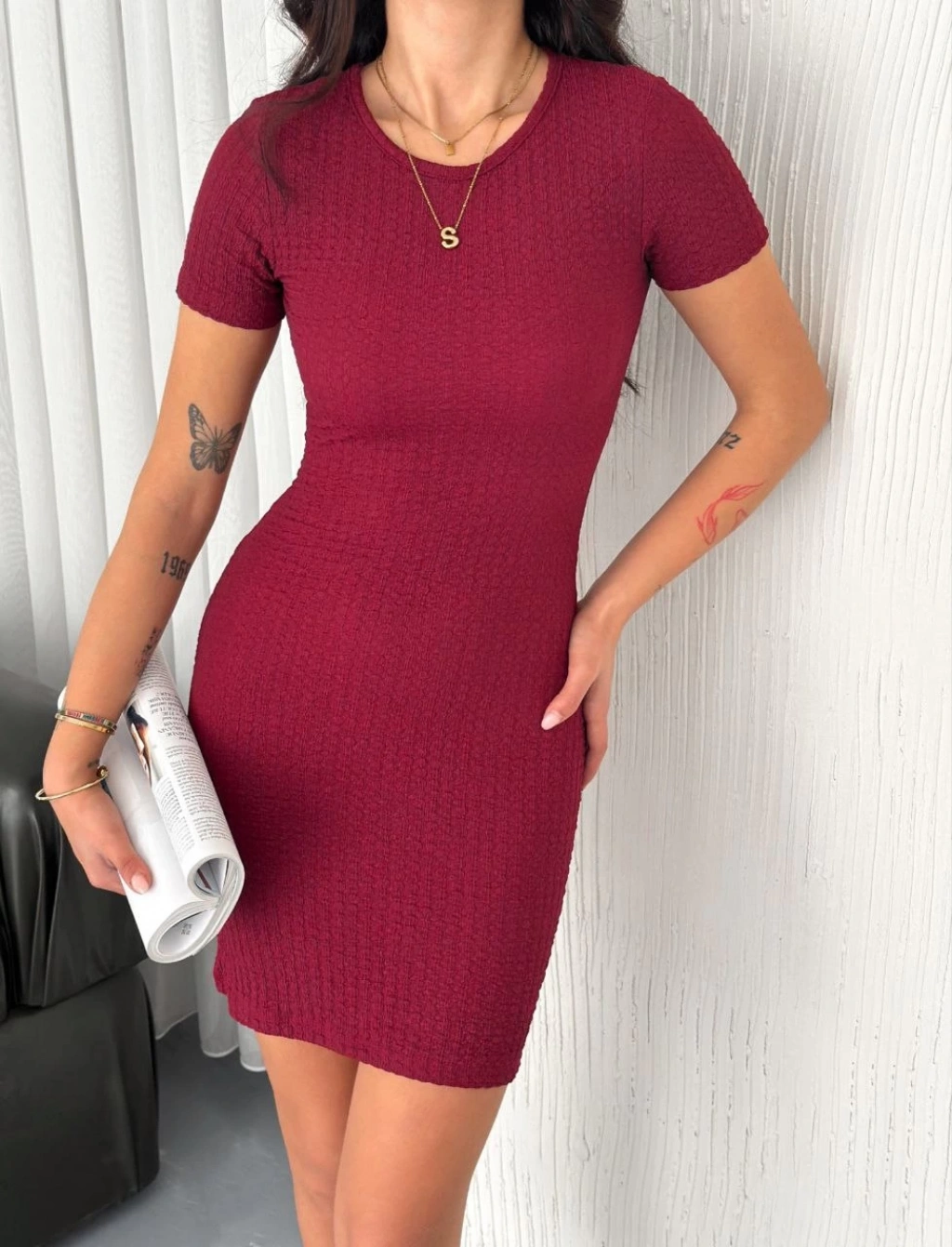 Kadın Bisiklet Yaka Kısa Kol Likralı Elbise - Siyah