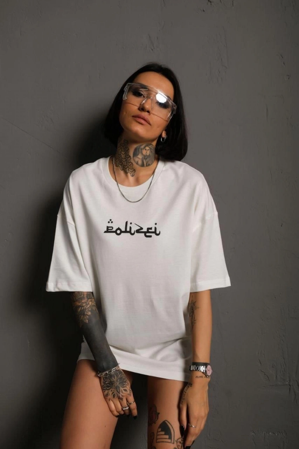Kadın Asit Yıkamalı Oversize Tişört Future Worlds Baskılı Bisiklet Yaka Kısa Kollu Streetwear %100 Pamuk Street Style T-Shirt - Beyaz