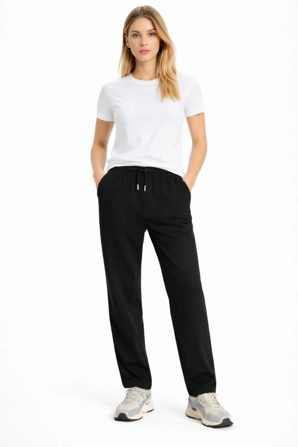 Kadın Jogger Eşofman Altı Rahat Kalıp, Cepli, Lastikli Paça, Günlük Spor Pantolon - Siyah