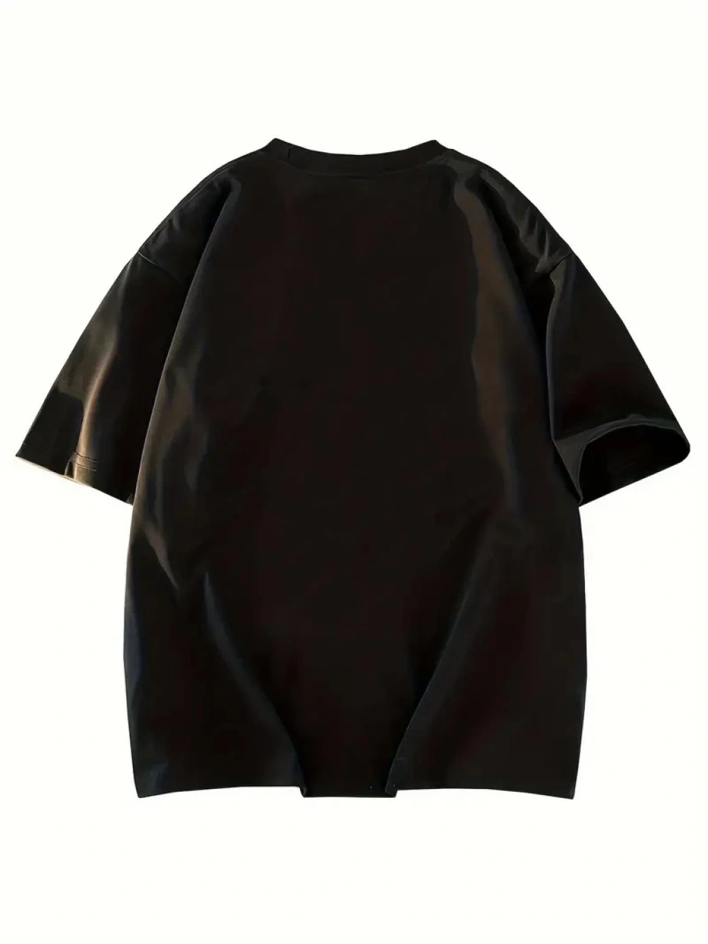 Newtro Baskılı Oversize Bisiklet Yaka T-shirt - Siyah