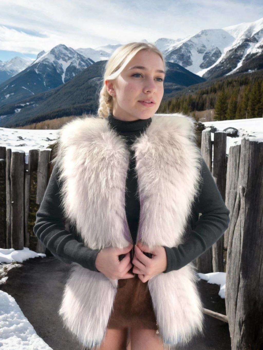 Kadın Kolsuz Hakiki Deri Kürk - Beyaz