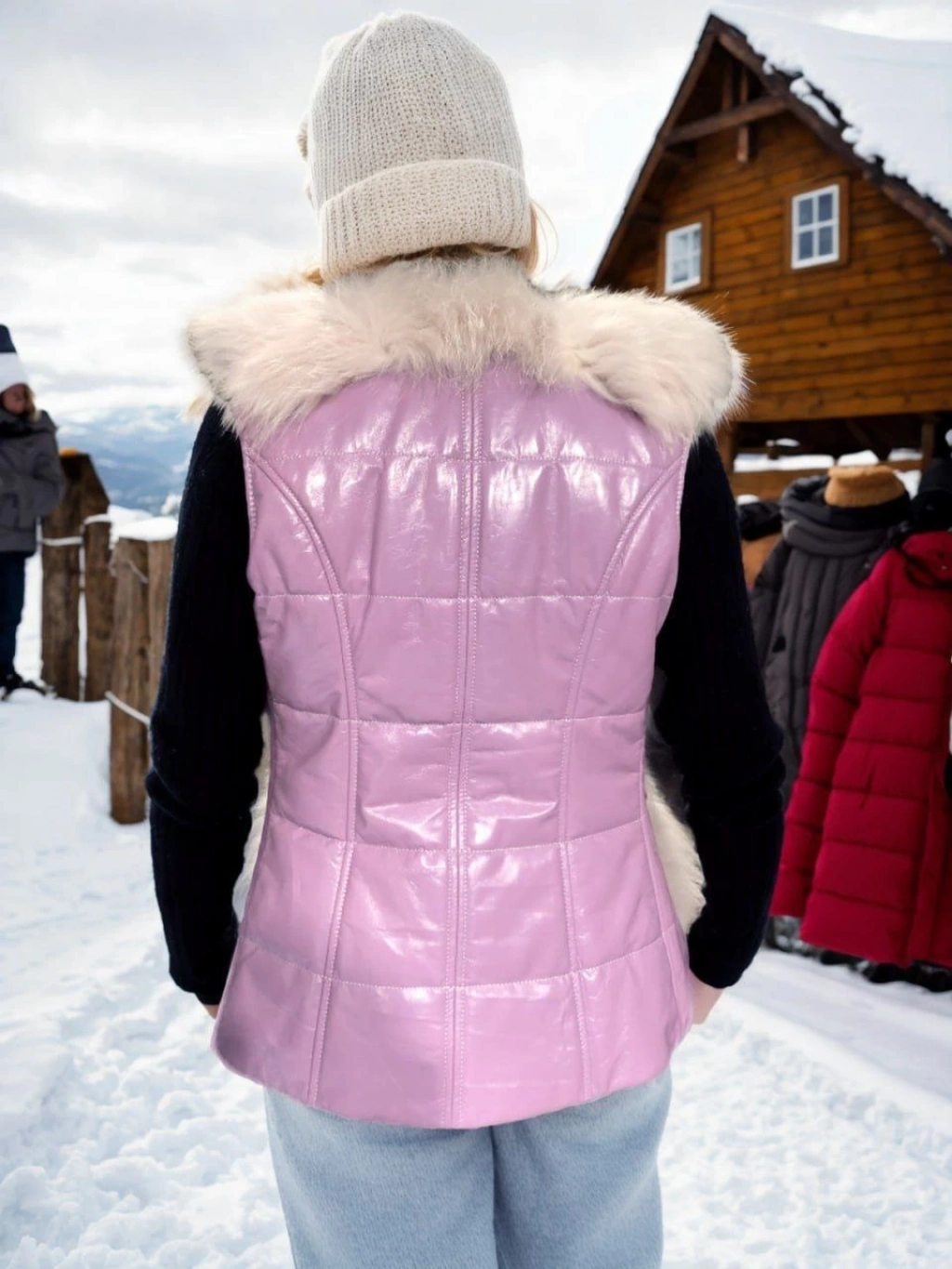 Kadın Kolsuz Hakiki Yelek - Fuşya