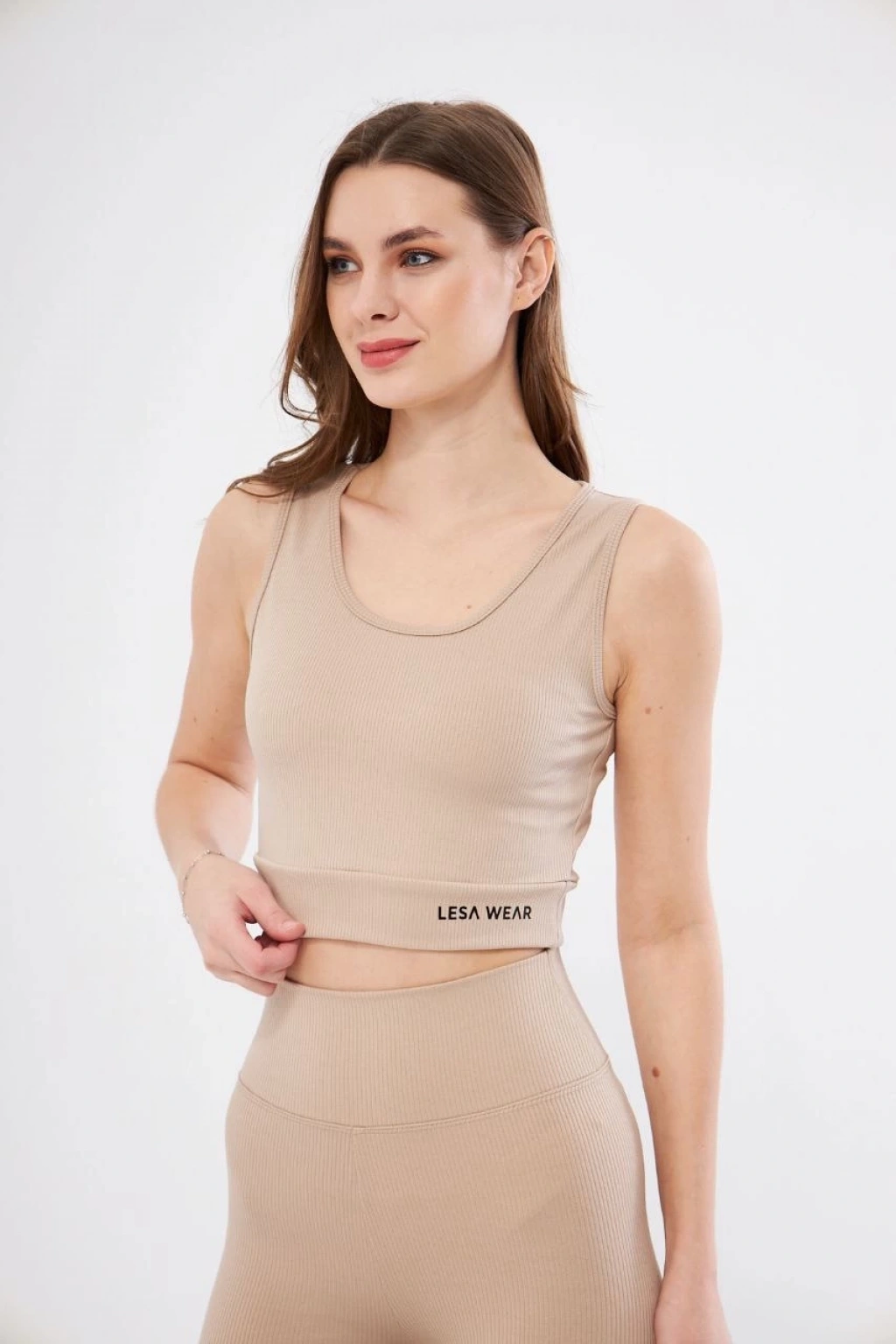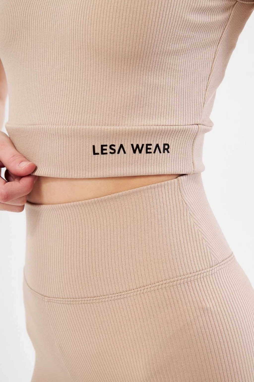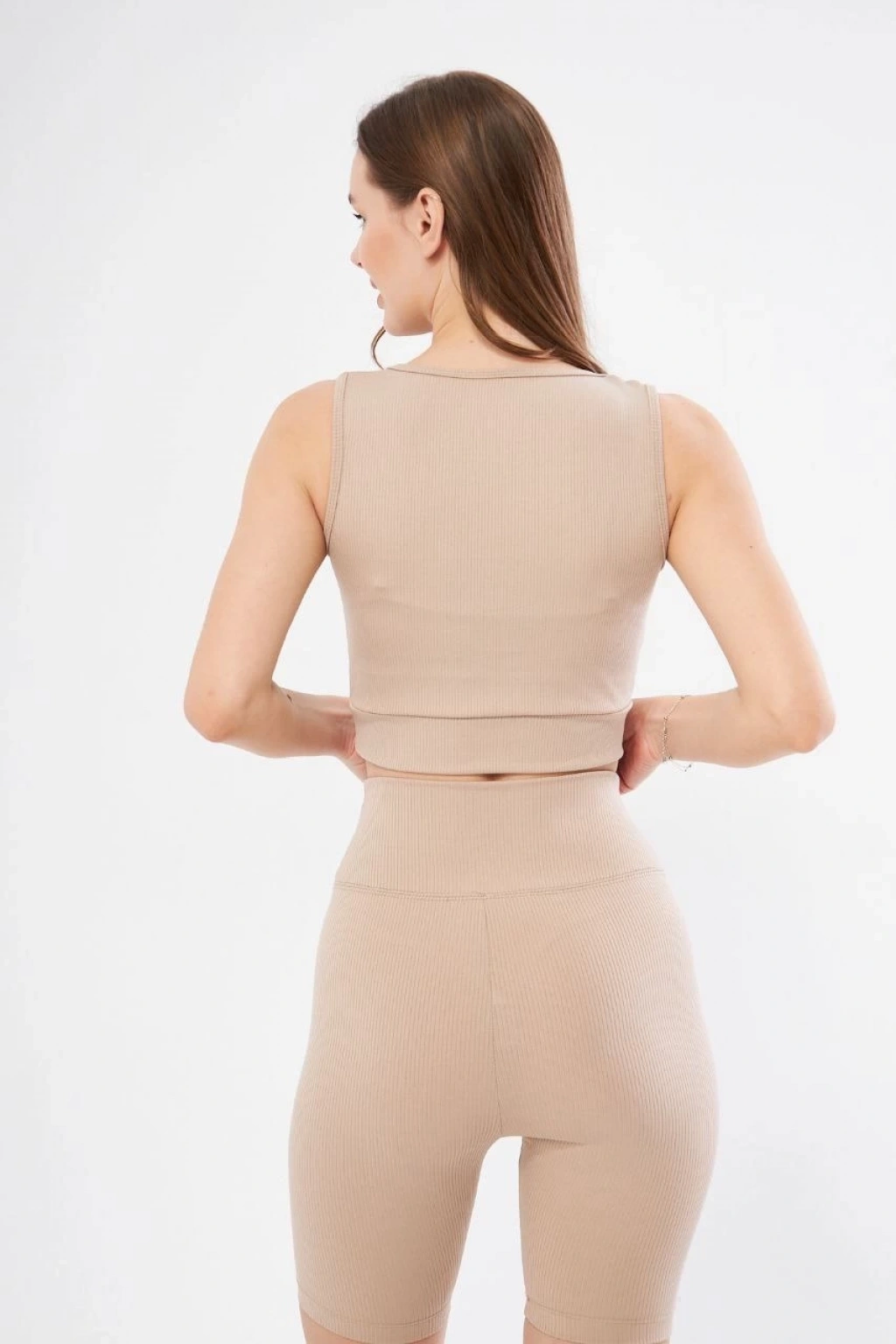 Kadın Yüksek Bel Fitilli Tayt - Bej