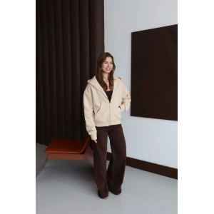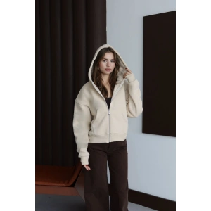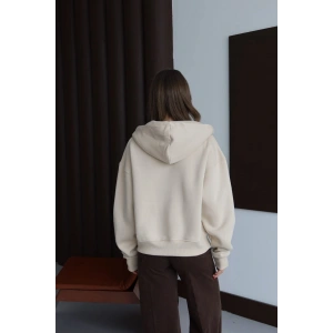 3 iplik şardonlu kapşonlu hoodie frm bej p510437