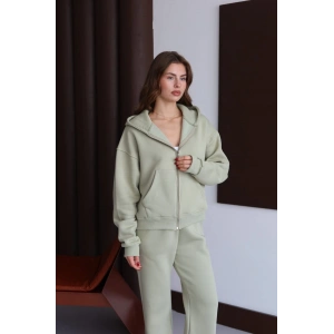3 iplik şardonlu kapşonlu hoodie frm mint p510437