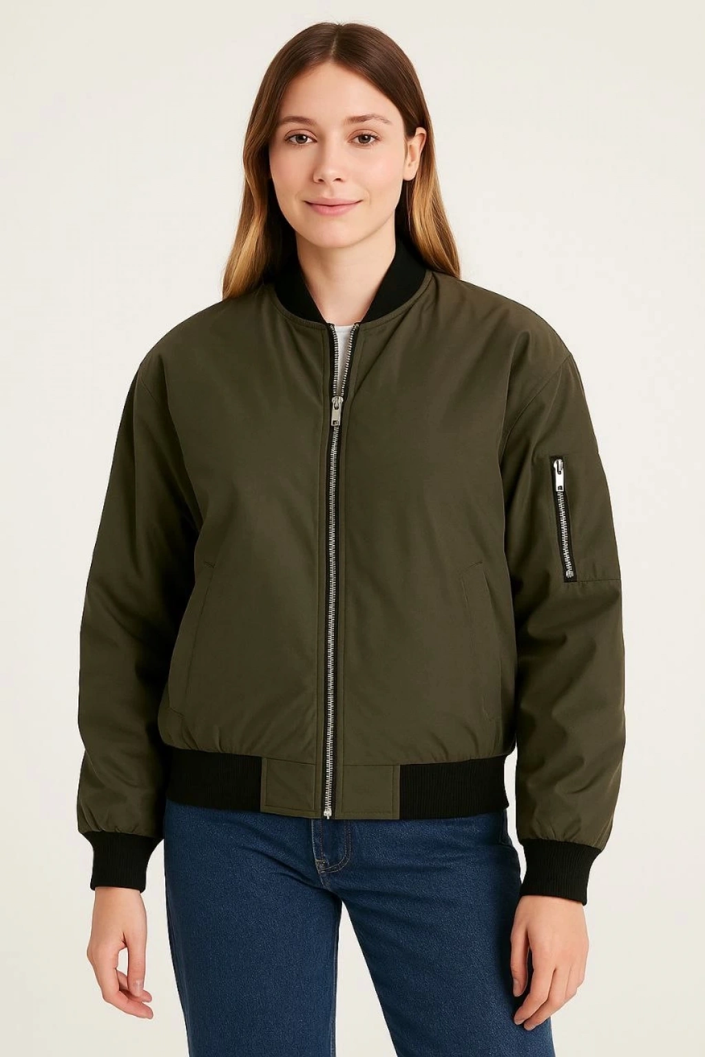 Kadın Oversize Bomber Ceket – Siyah, Fermuarlı, Sokak Modası Tarzı Mont - Siyah