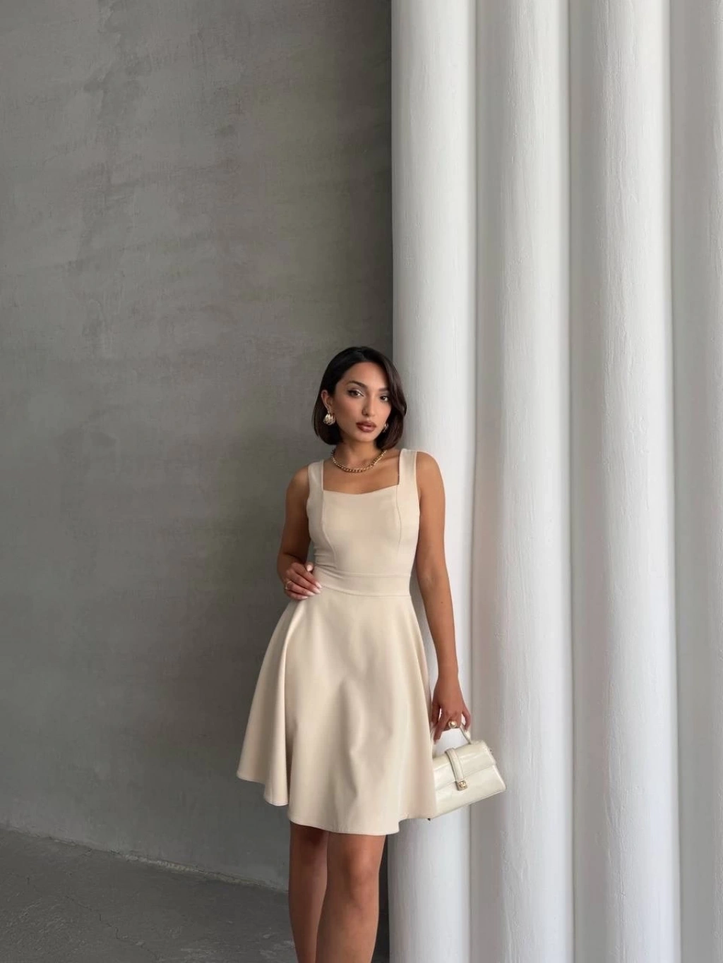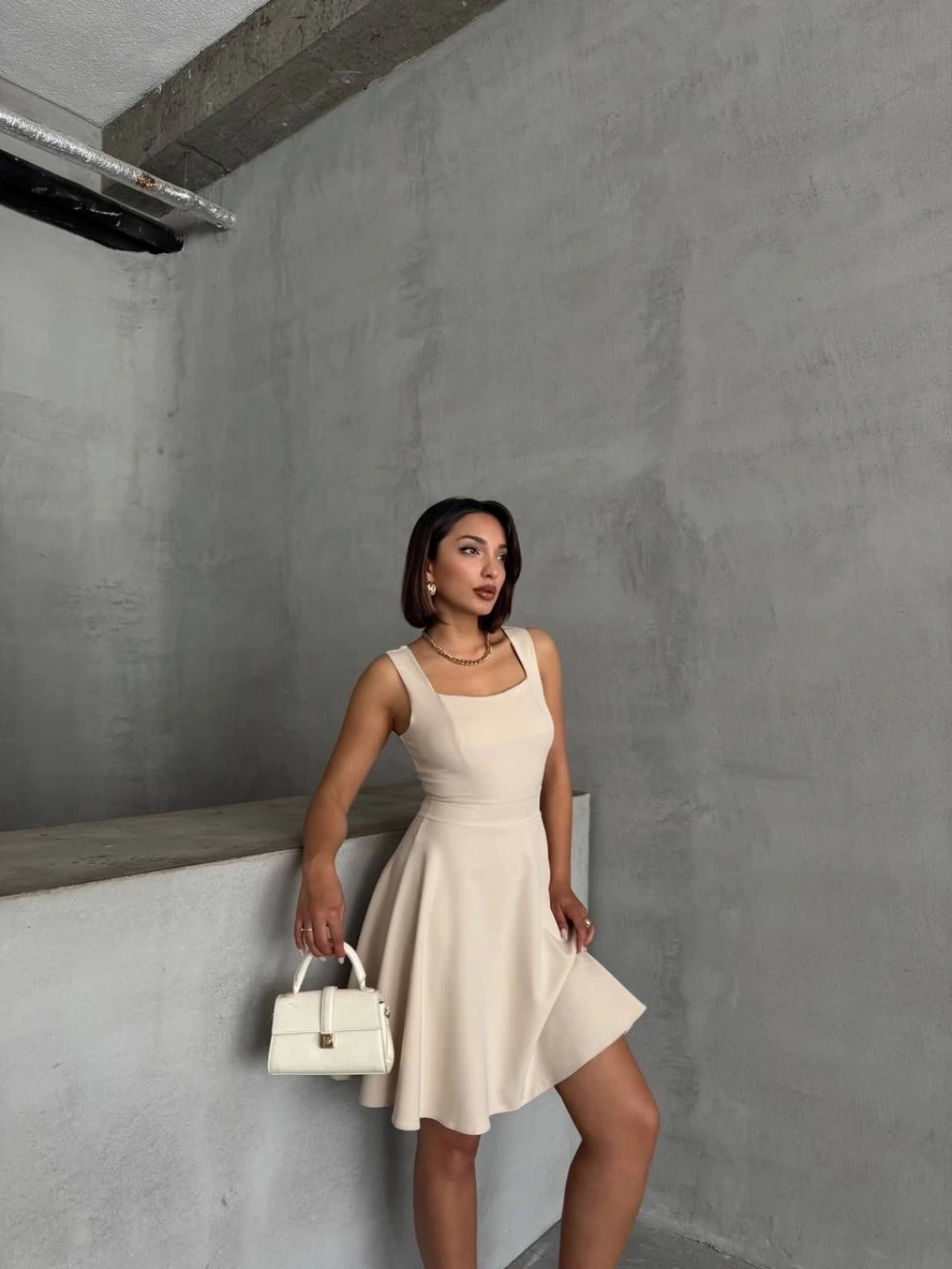 Prenses kol kaşkorse elbise bej a3691