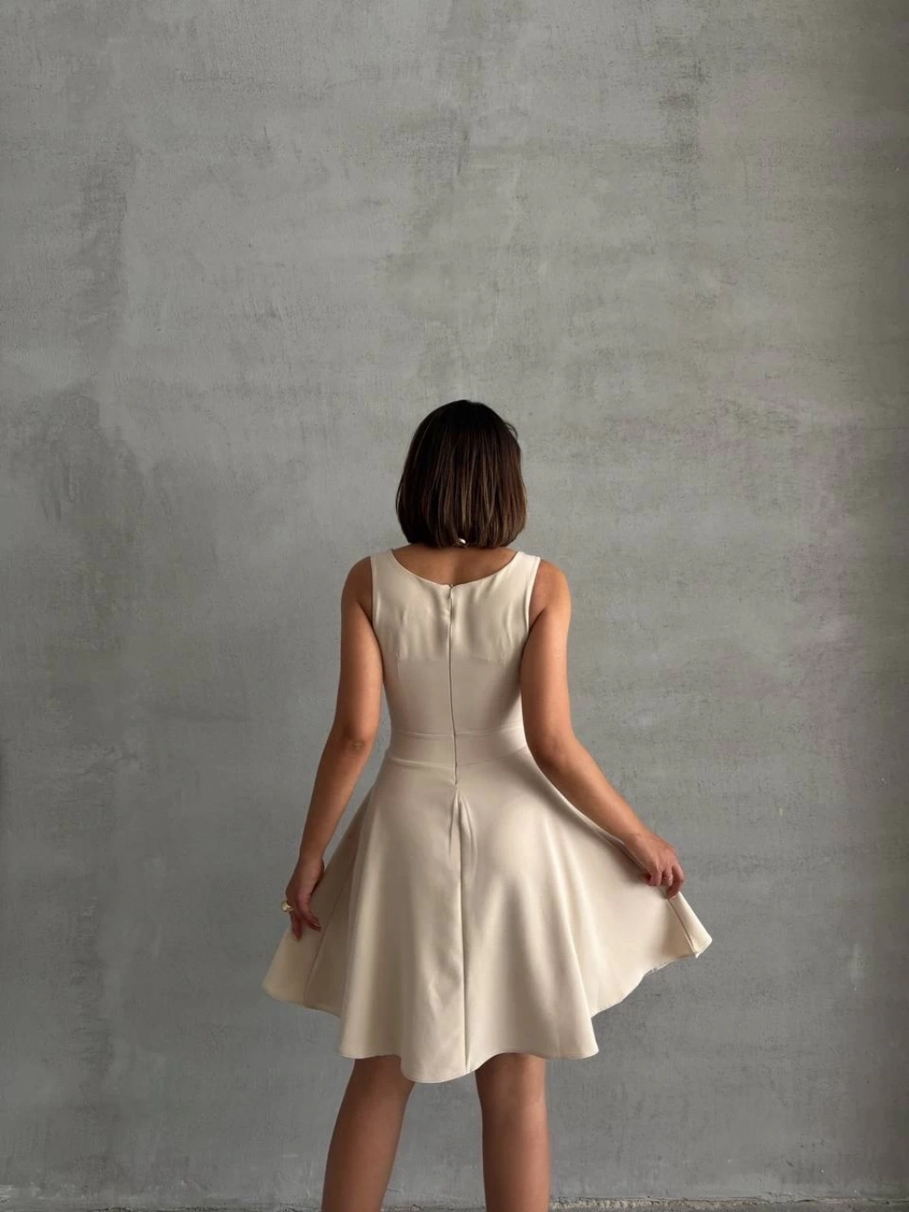 Fermuar detaylı fitilli şardonlu elbise bej a3178
