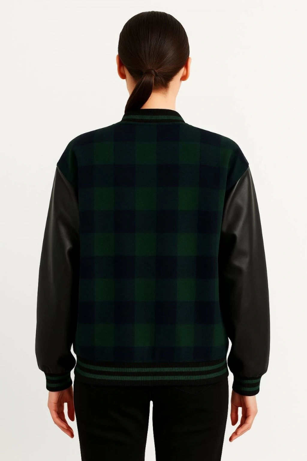 KADIN KOLEJ CEKET – KARELİ ODUNCU KUMAŞ, KOLLARI SUNİ DERİ, FERMUARLI, İÇİ KAPİTONE ASTARLI, NAKIŞLI OVERSİZE BAHAR & KIŞ STİL - GRİ