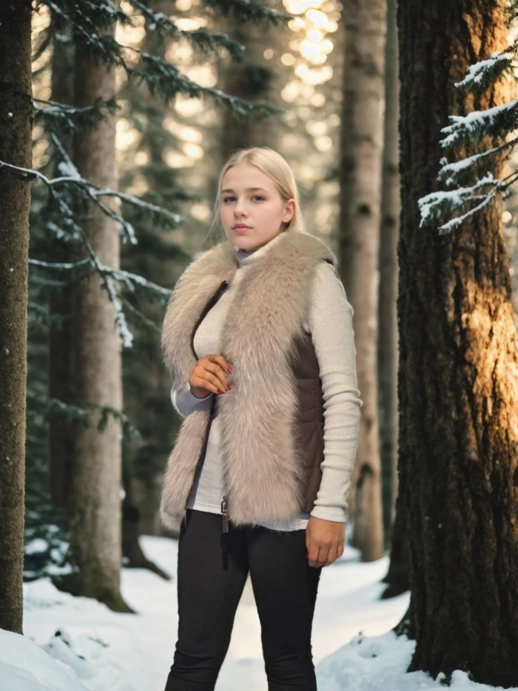 Kadın Kolsuz Hakiki Kürk - Kahve