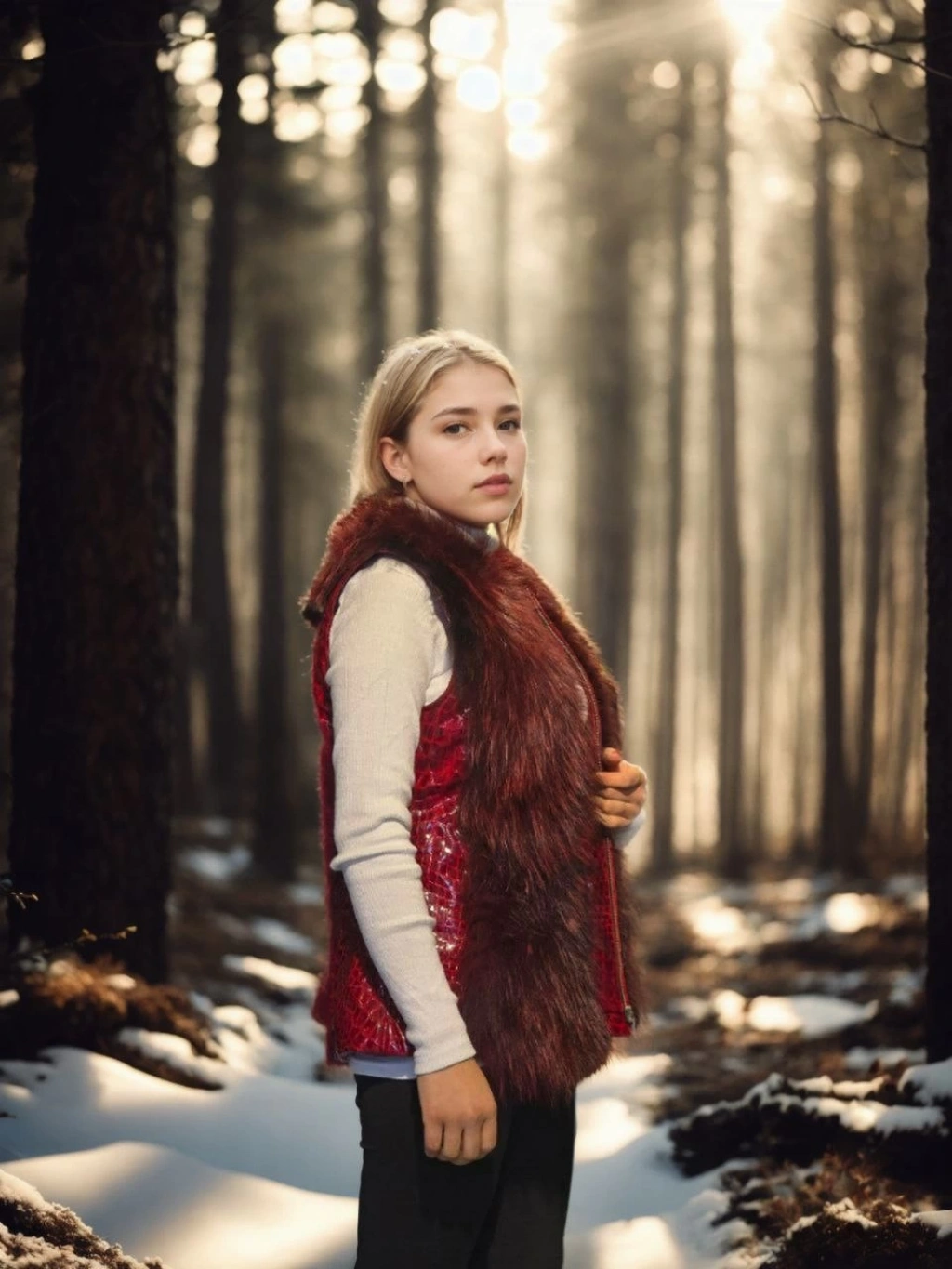Kadın Reks Kapüşonlu Yelek - Kırmızı