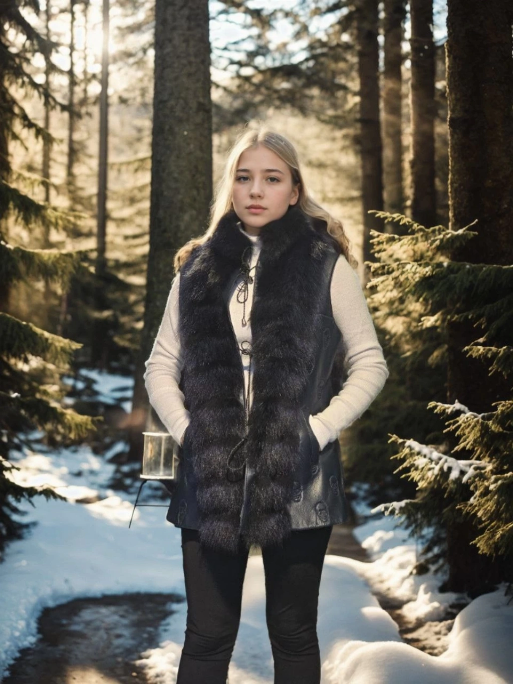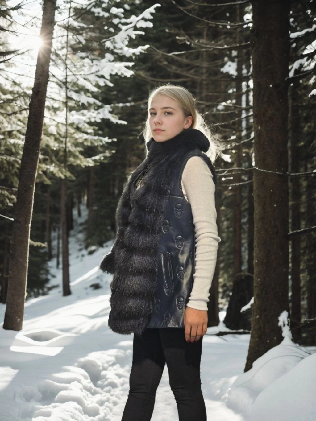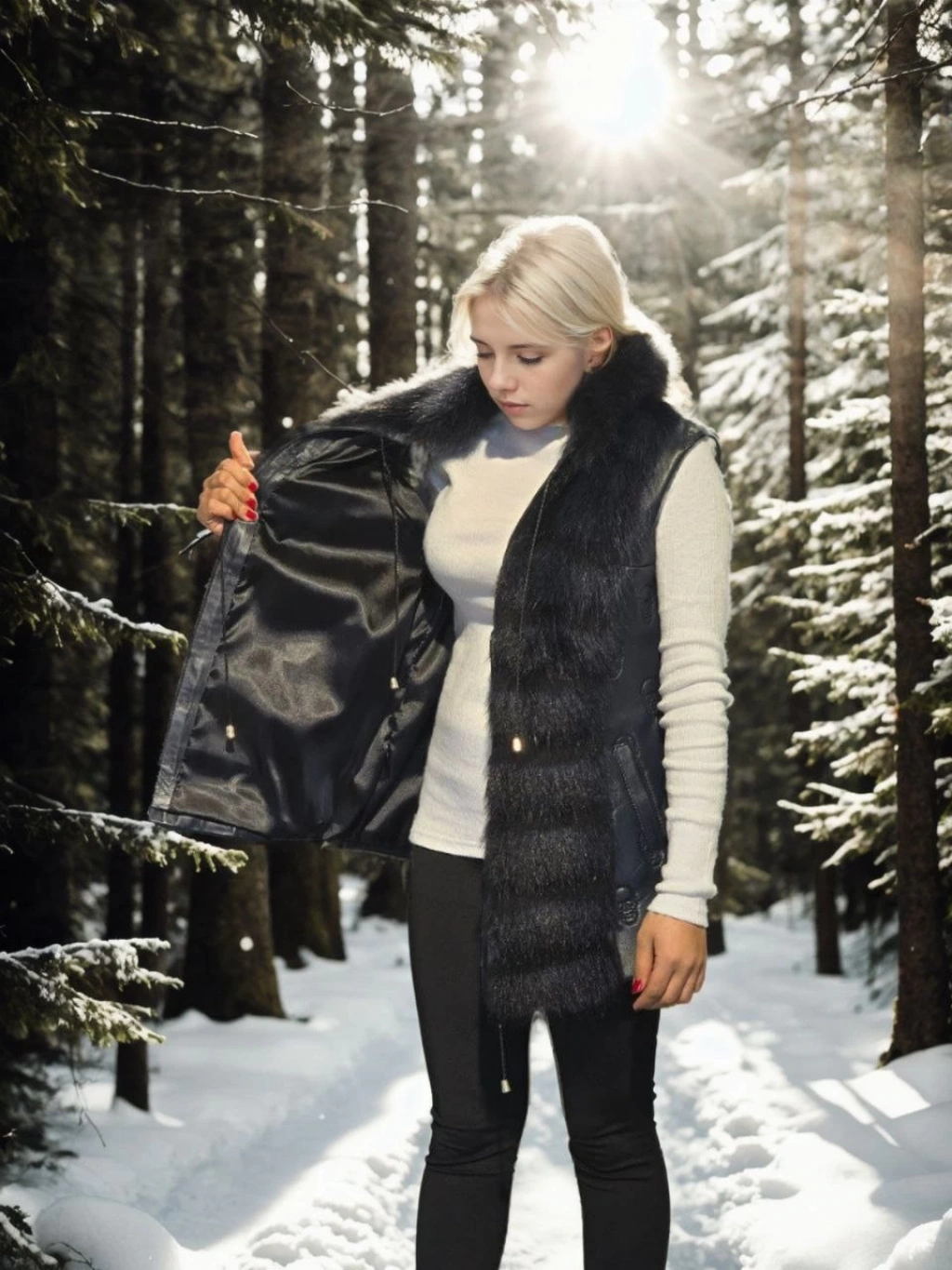 Kadın Kolsuz Hakiki Kürk - Siyah