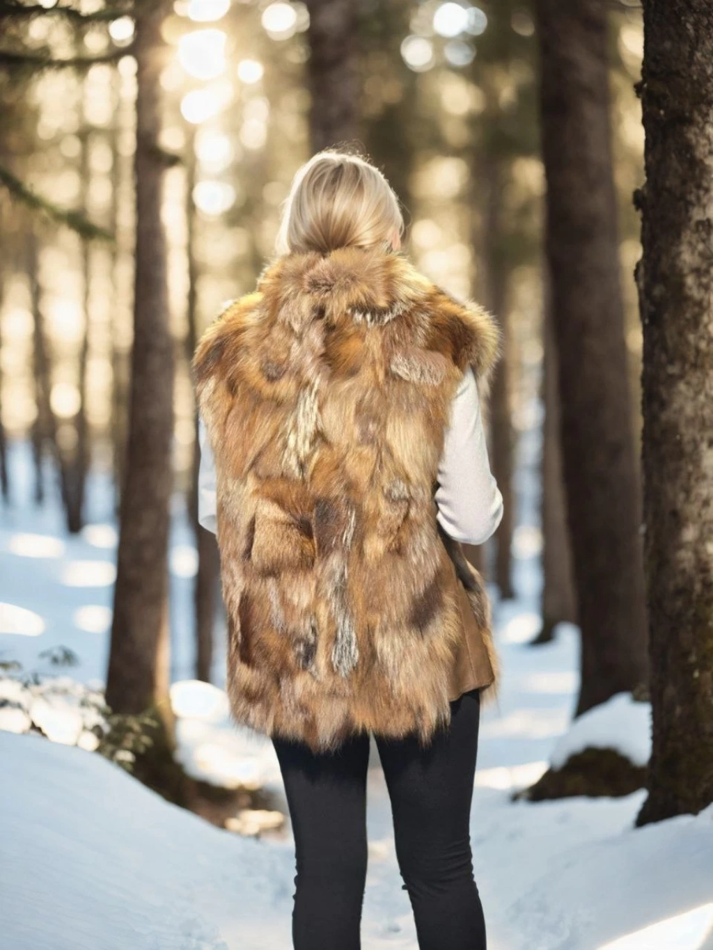 Kadın Kolsuz Hakiki Kürk - Siyah