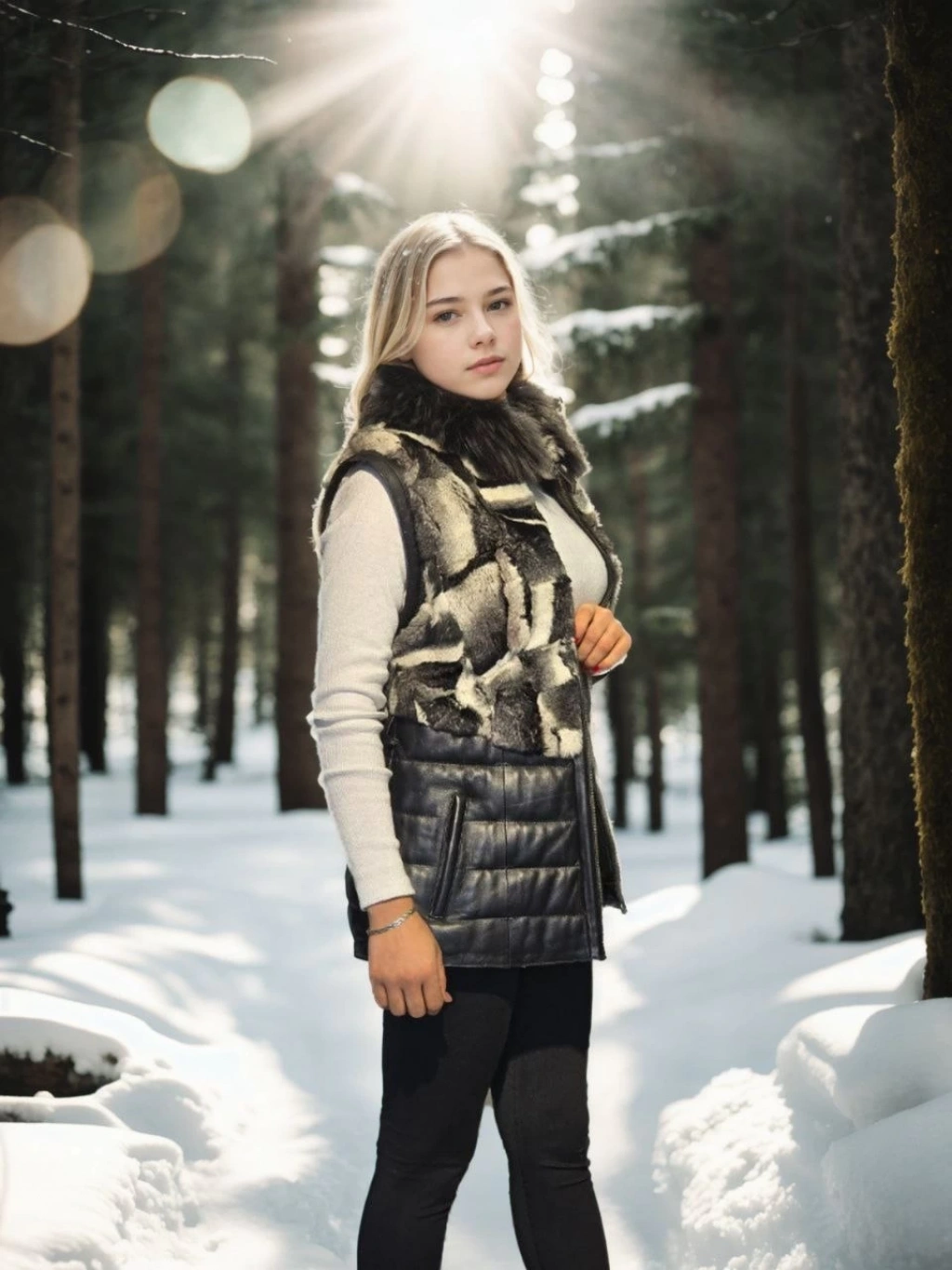 Kadın Kolsuz Hakiki Deri Kürk - Beyaz