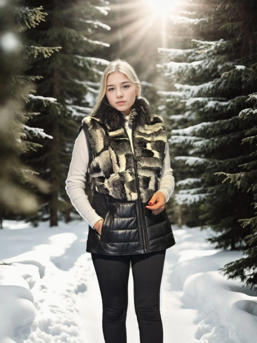 Kadın Kolsuz Hakiki Kürk - Siyah