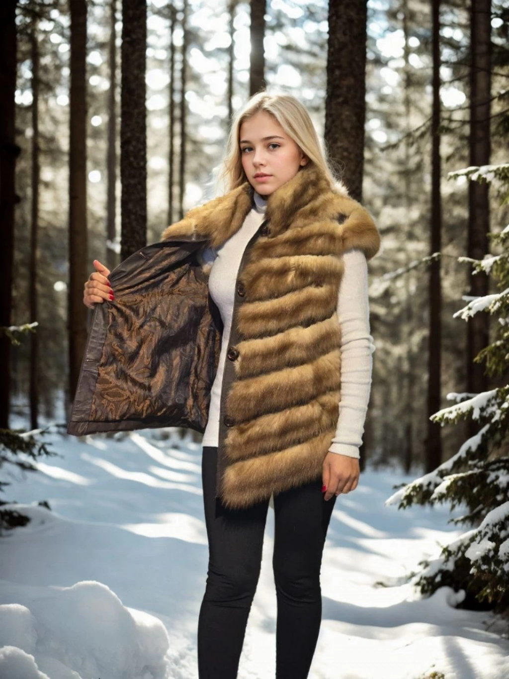 Kadın Kolsuz Hakiki Kürk - Siyah