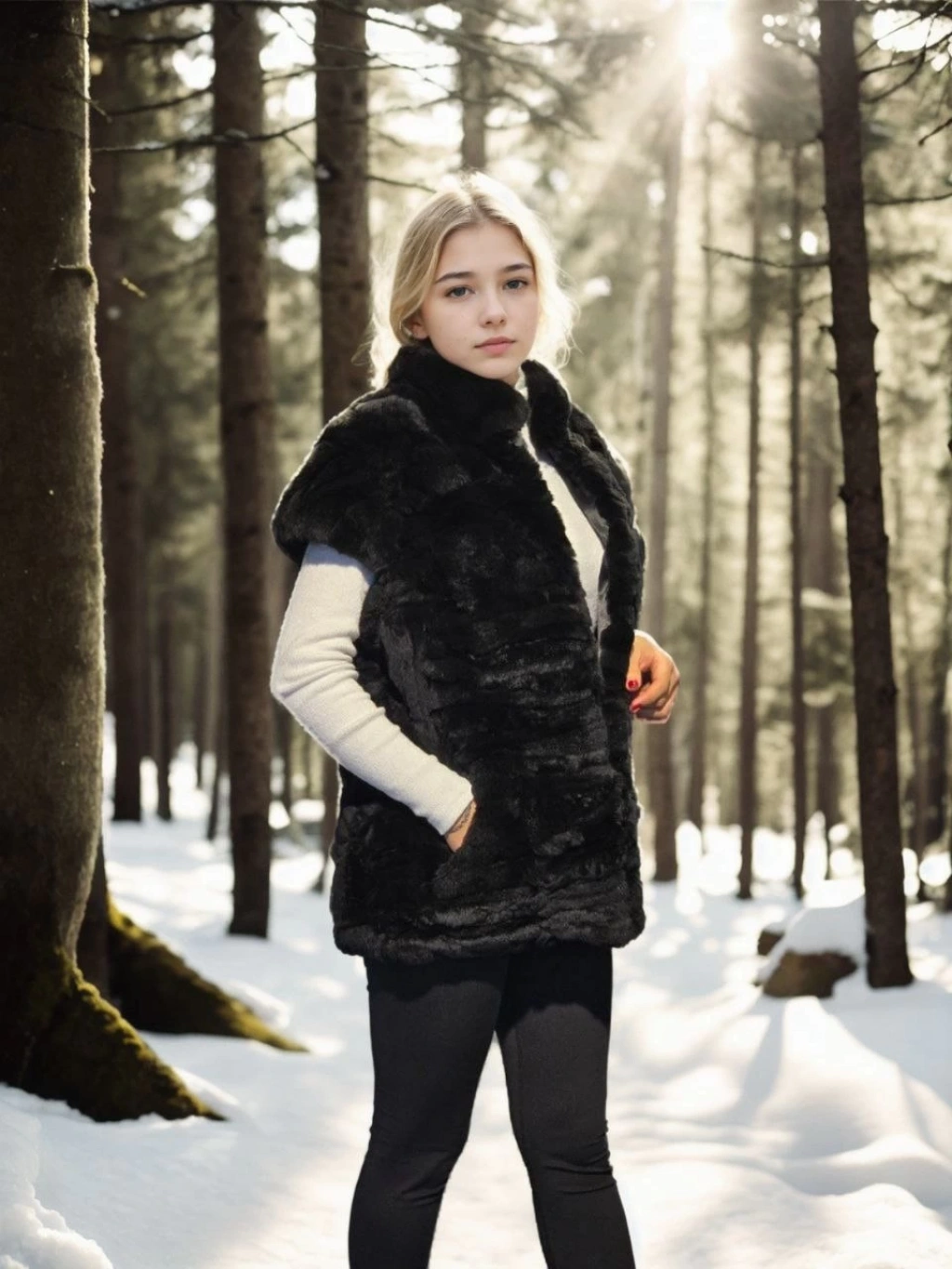 Kadın Kolsuz Hakiki Kürk - Siyah