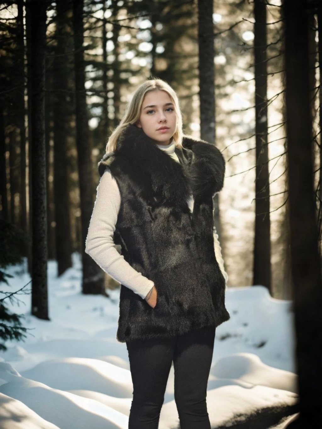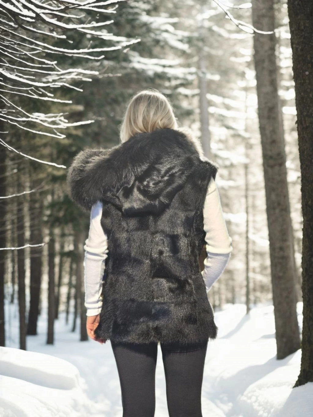Kadın Kolsuz Hakiki Kürk - Siyah