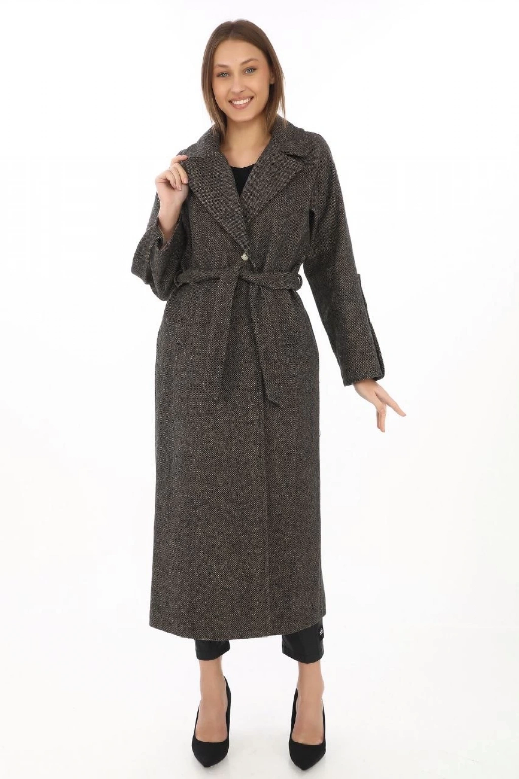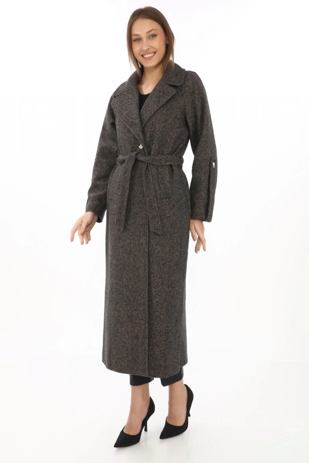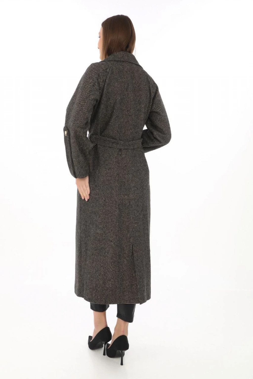 Kadın Kolu Apoletli Astarlı Kaşmir Kaşe Kaban - Füme