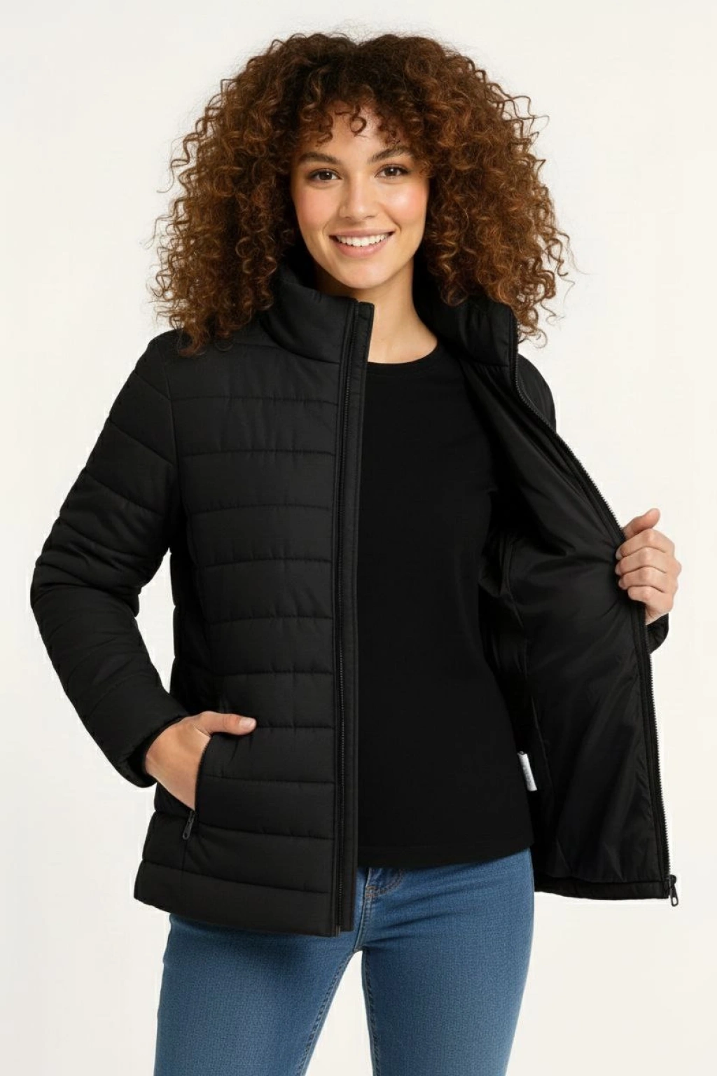 Kadın Bomber Mont Ceket – Su İtici Kumaş, Kapitone Astarlı, Fermuarlı, Kışlık - Siyah