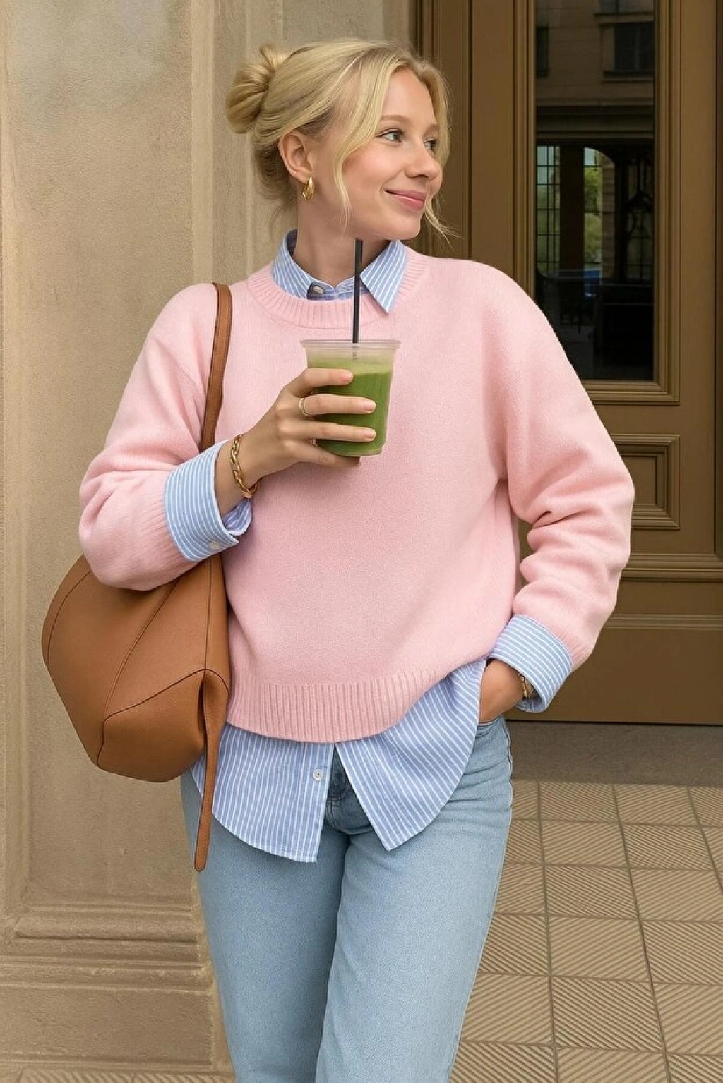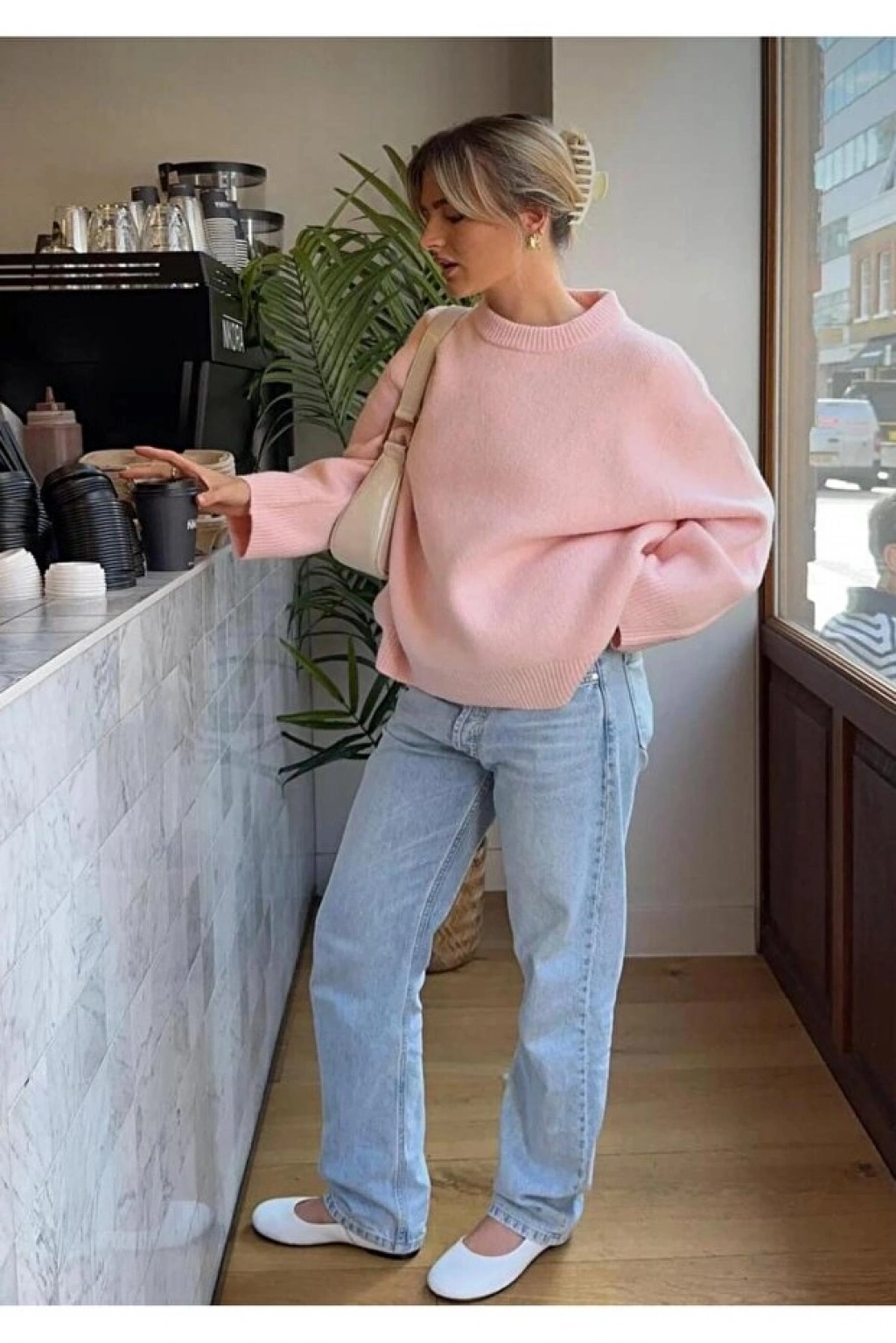 Kadın pembe Oversize Kalıp Kışlık Kazak