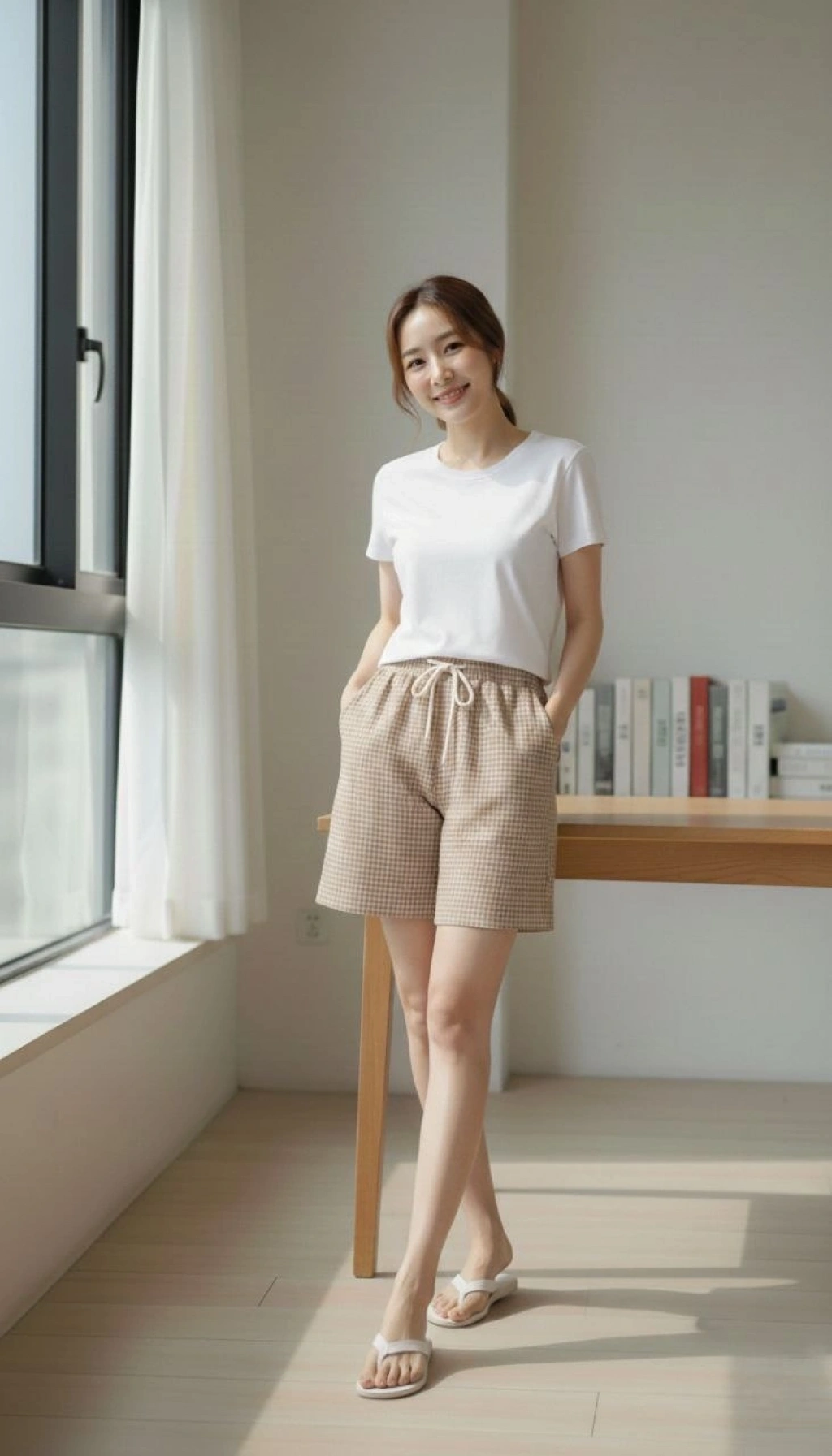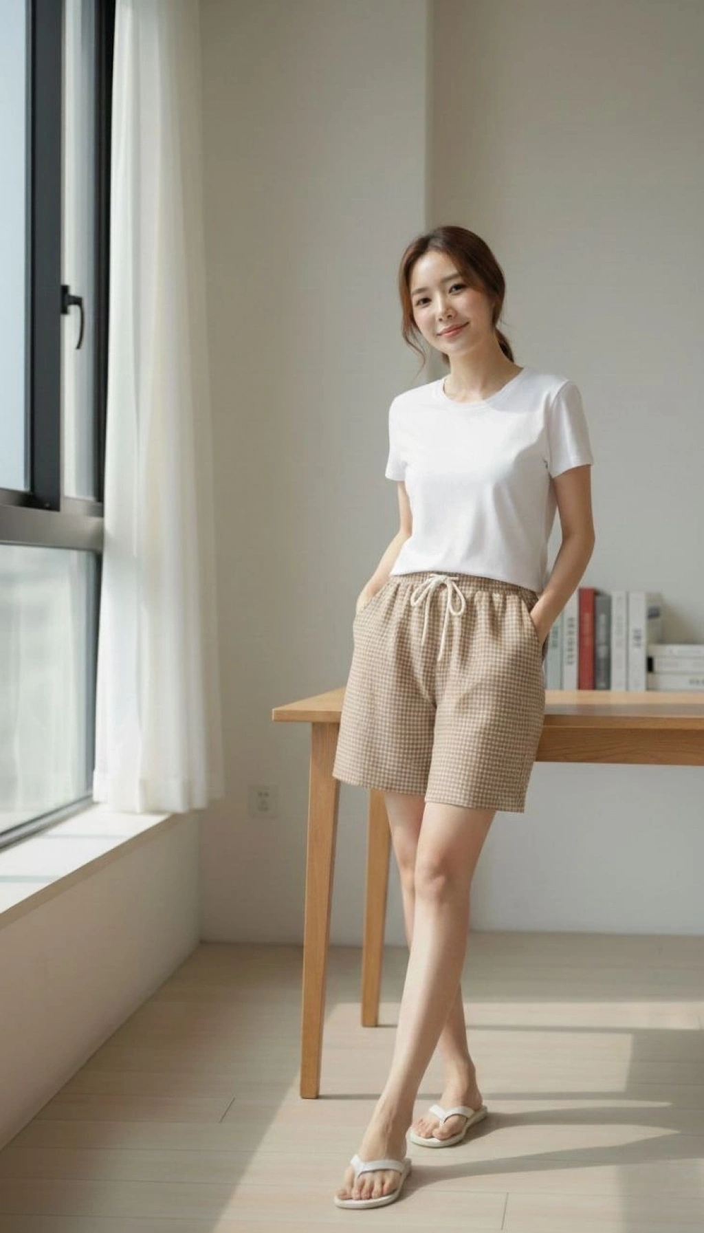 Kadın Pötikareli Şort – Beli Lastikli Bağcıklı, Cepli, Rahat Kesim Günlük Yazlık Şort - Füme