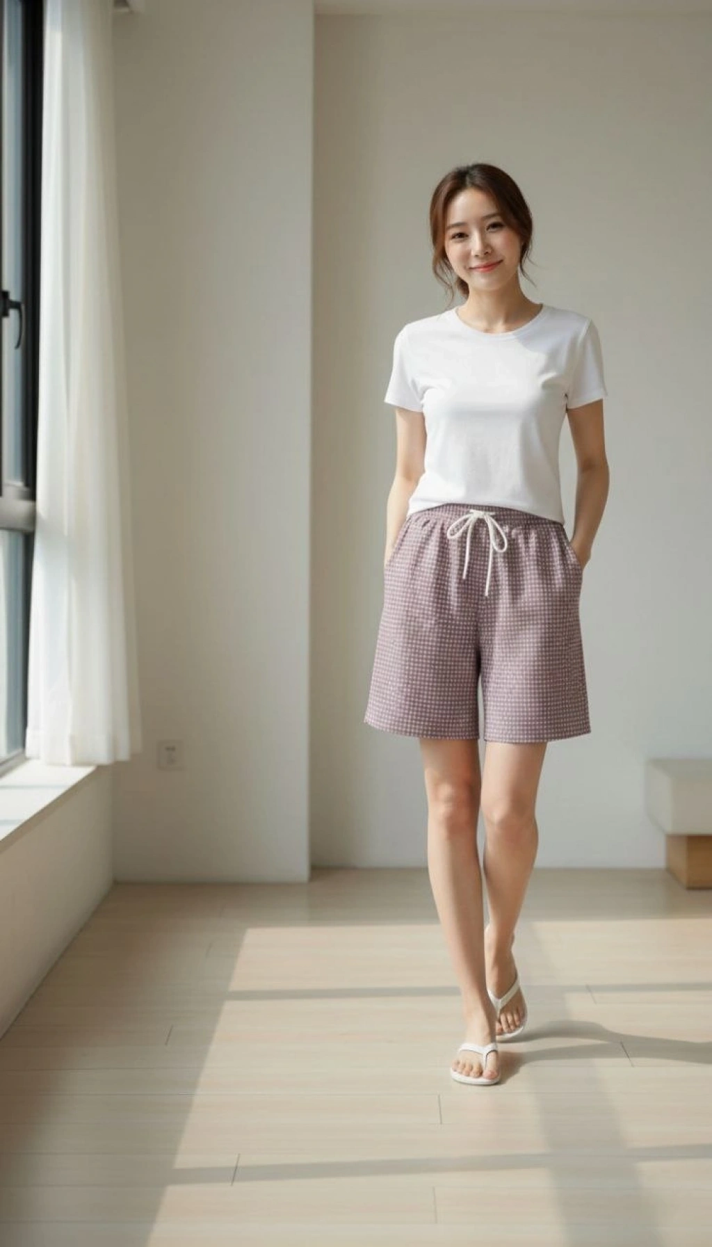 Kadın Pötikareli Şort – Beli Lastikli Bağcıklı, Cepli, Rahat Kesim Günlük Yazlık Şort - Bej